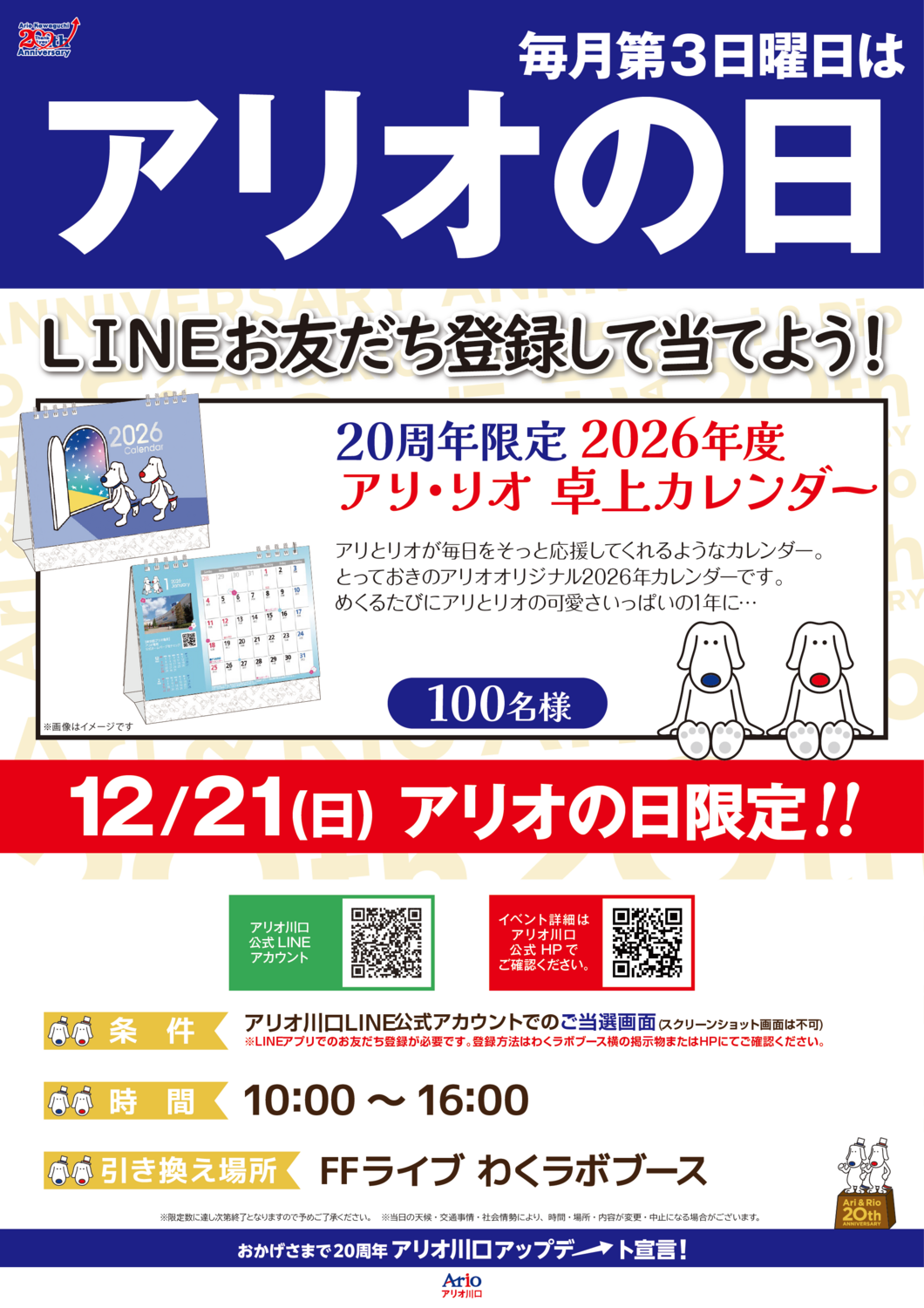 毎月第3日曜日はアリオの日!LINEを友だち追加してアリリオグッズを当てよう!