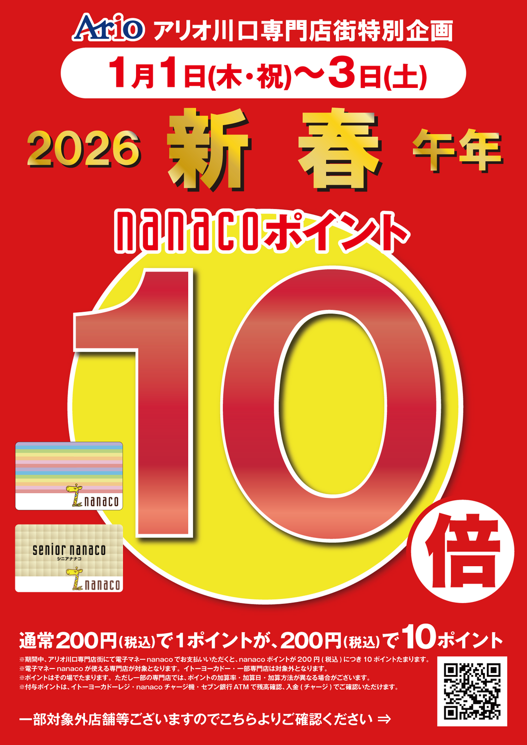 【アリオ川口専門店街 新春特別企画】nanacoポイント10倍キャンペーン