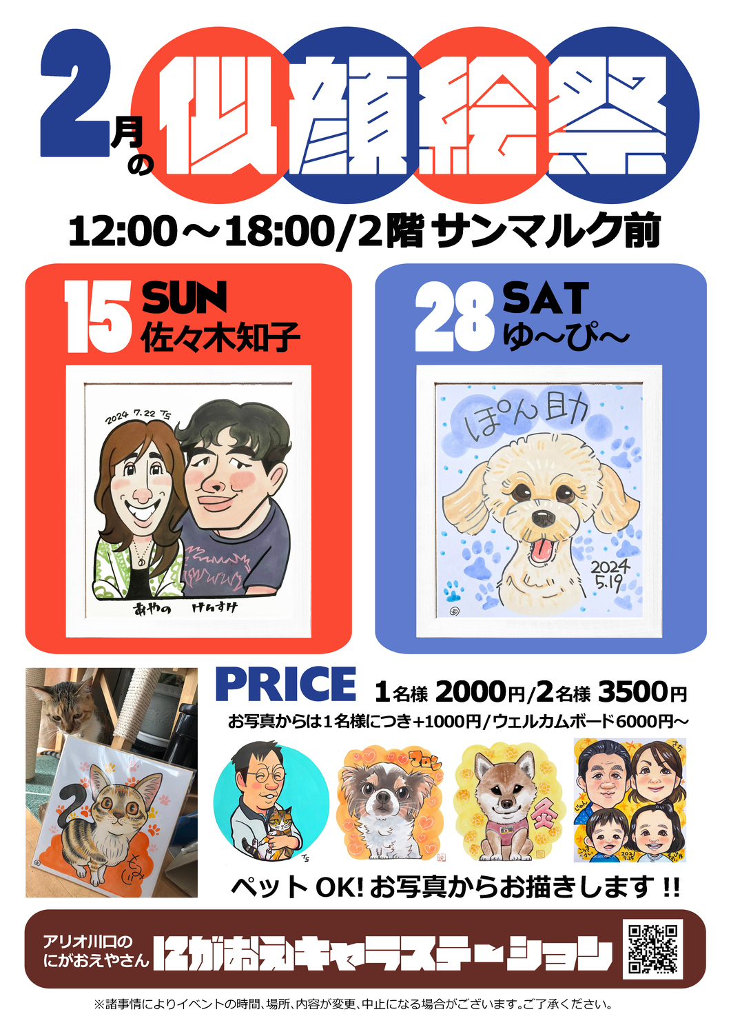 2/28(土) わくわく嬉しい似顔絵、ゆ~ぴ~