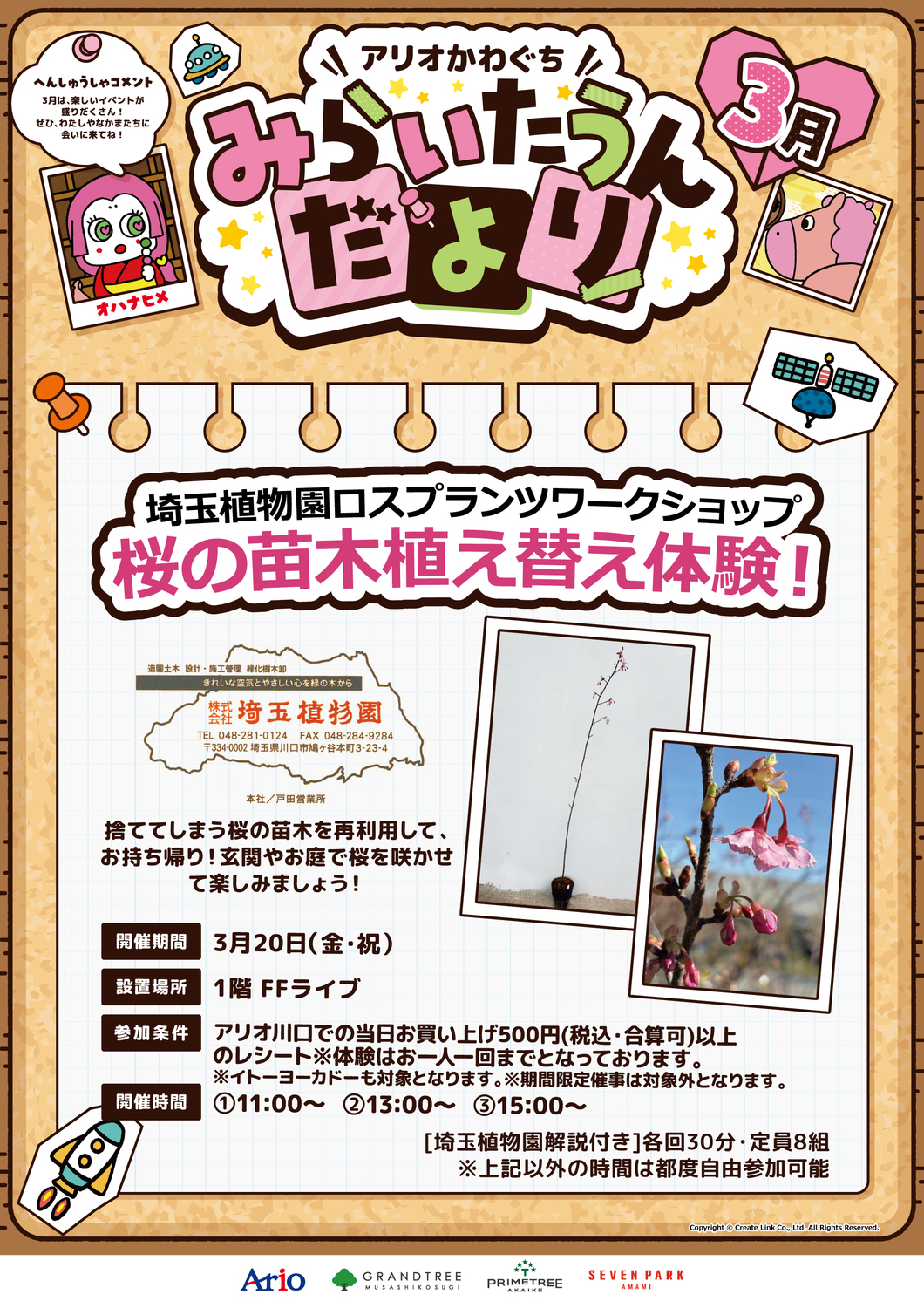 参加条件:アリオ川口での当日お買い上げ500円(税込・合算可)以上のレシート提示