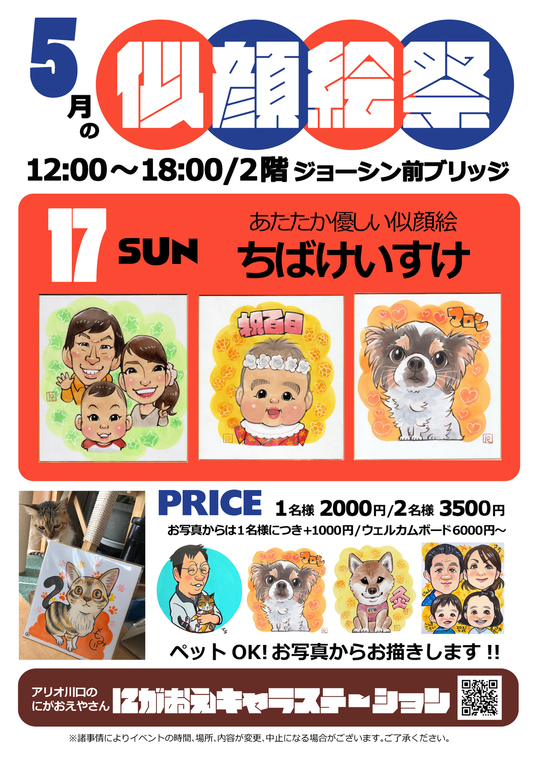 5/17(日) あたたか優しい似顔絵、ちばけいすけ