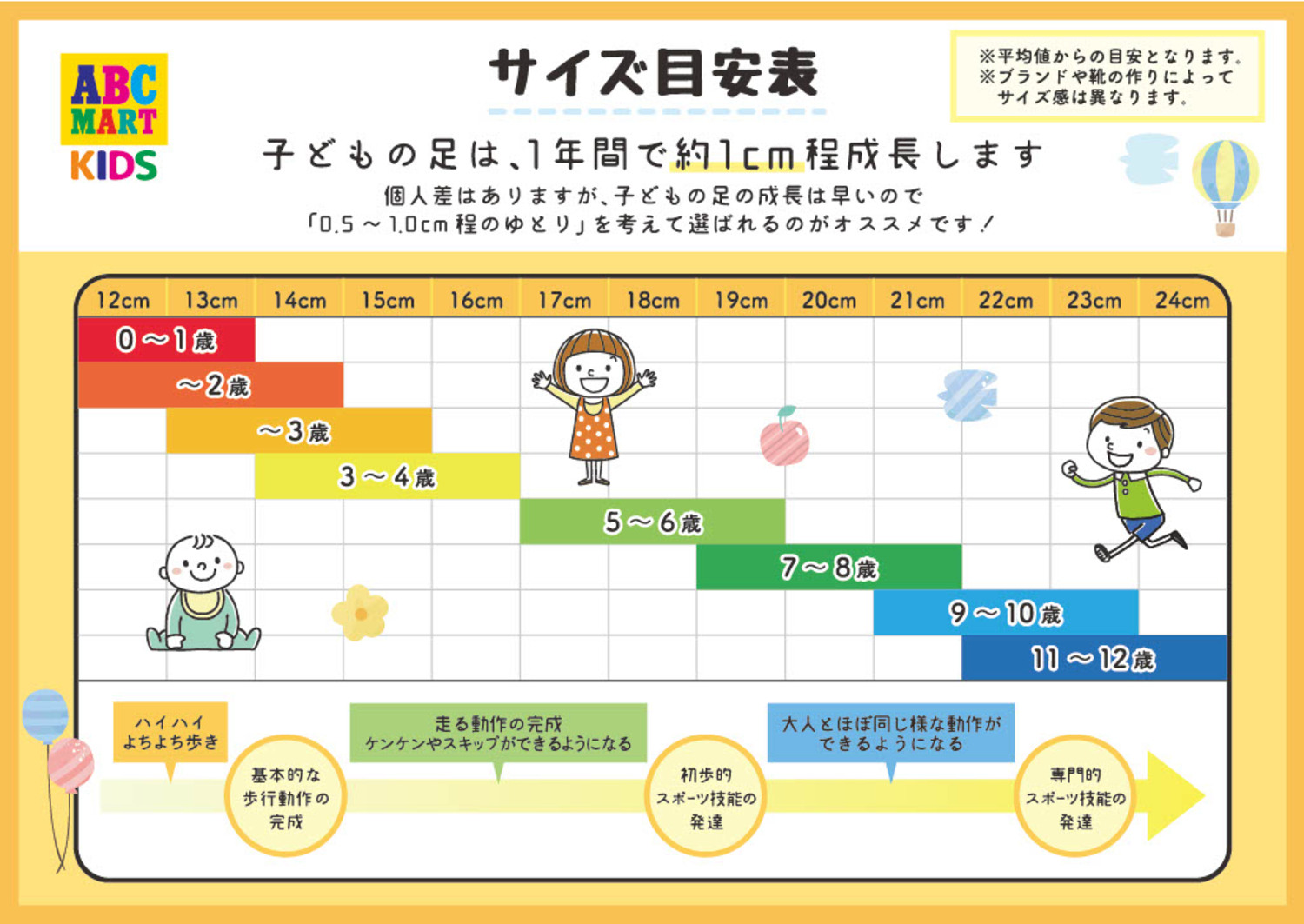 子どもの足の成長はとても早く、春夏は長さ・秋冬は太さが大きくなると言われています。