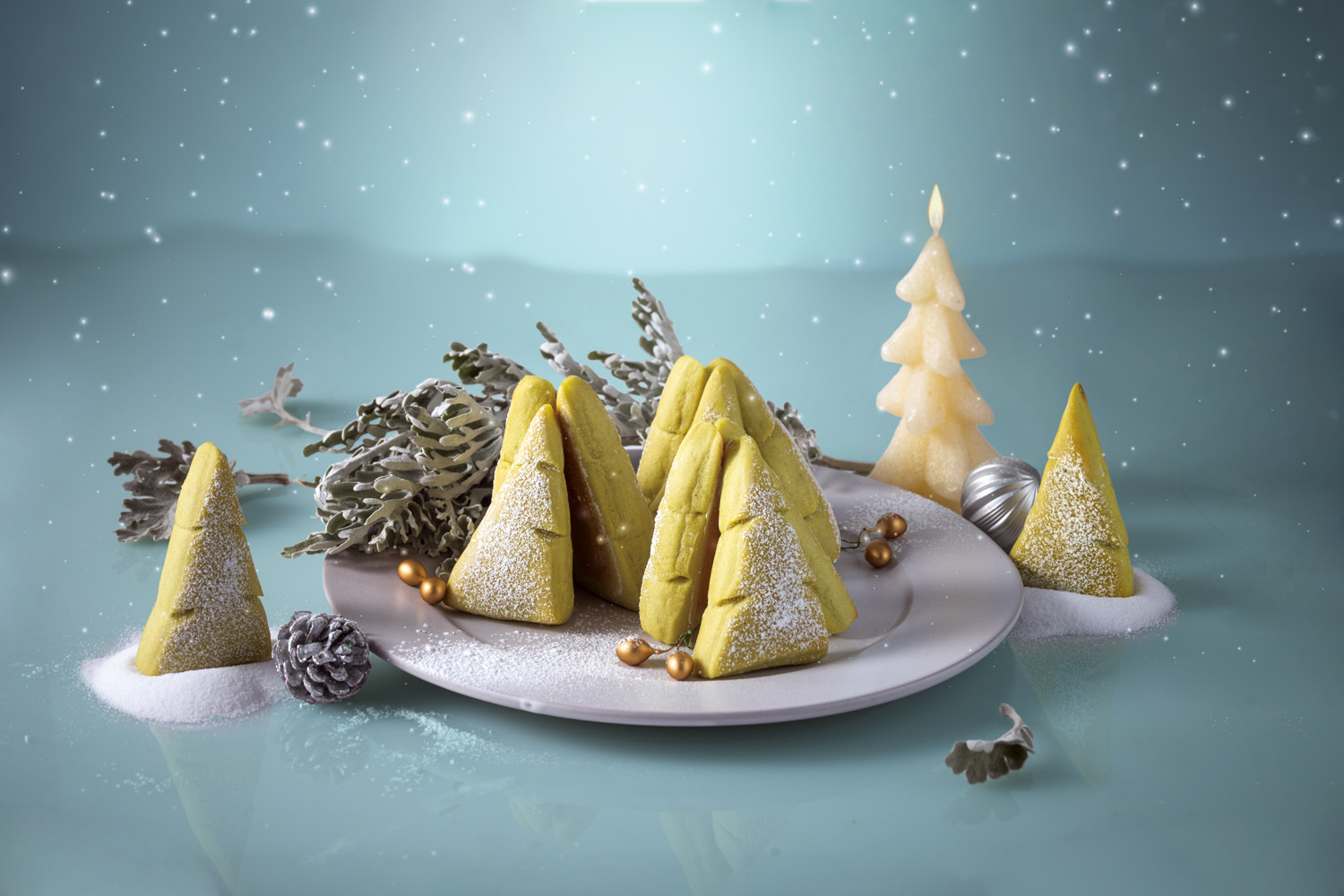 ピスタチオペーストを練り込んだ、もみの木パン。焼き上がりがほっこりかわいい、季節限定パンです。