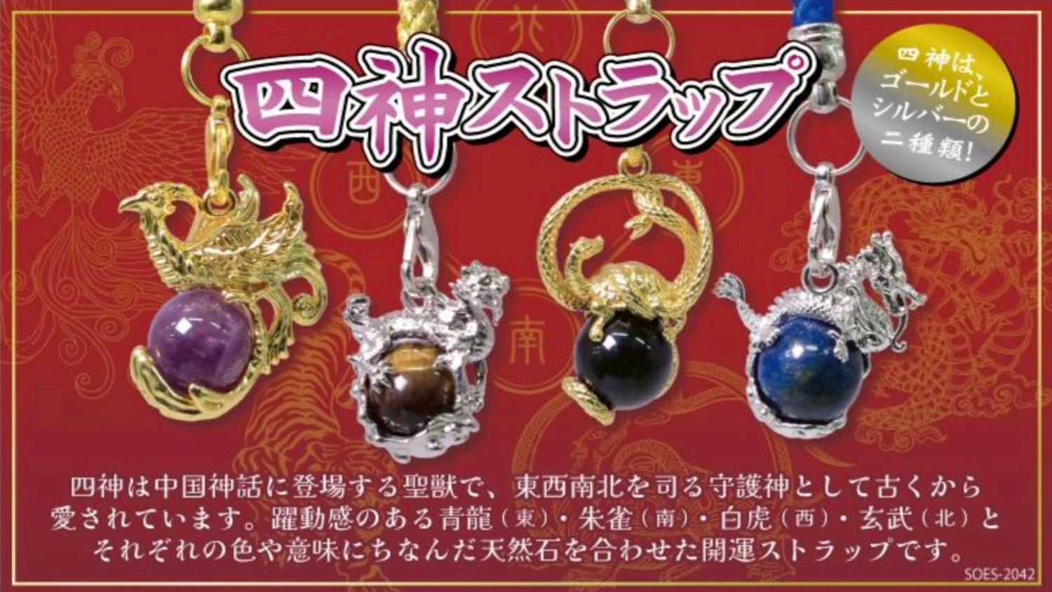 各神獣、シルバーとゴールドの2色あり、それぞれの色や意味にちなんだ天然石を合わせた全8種類でご用意してます!